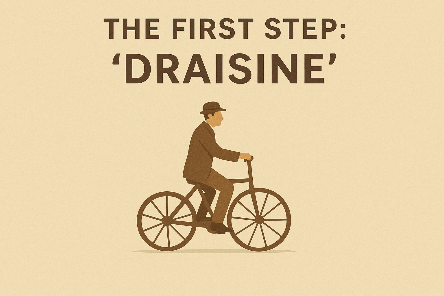 It all began with Karl Drais, a German inventor, who created the “Draisine”, a wooden, two-wheeled vehicle without pedals. Riders had to push with their feet to move forward, the earliest version of what we now call a balance bike!