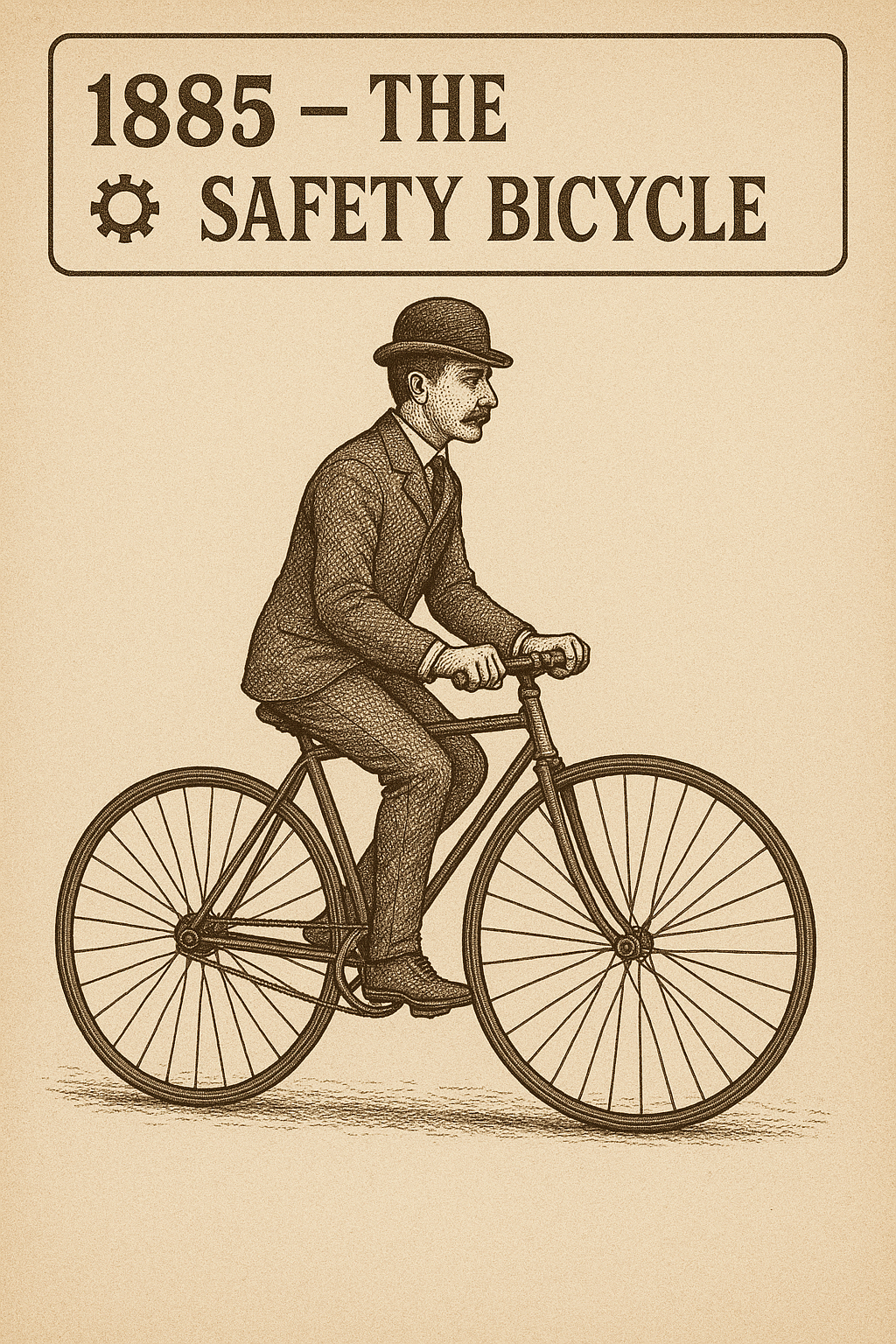 A breakthrough came with John Kemp Starley’s “Rover Safety Bicycle”, which had equal-sized wheels and a chain drive, much like modern bikes today. It made cycling safer, faster, and more accessible for everyone.